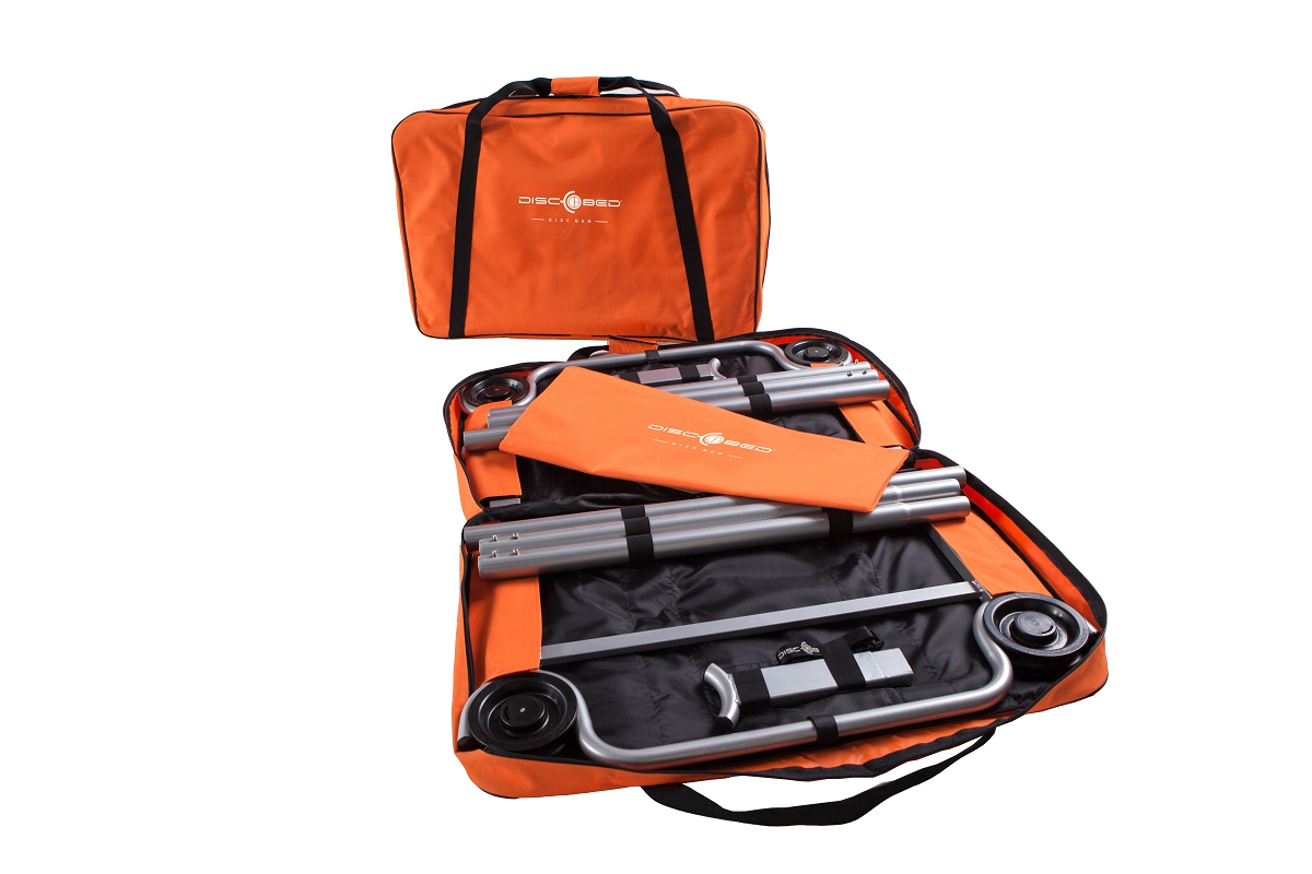 It’s been said that disaster operations are all about logistics. Disc-Bed makes rapid deployment easy for mass care and sheltering. It ships flat and sets up quickly with no tools. Its compact footprint allows you to assist more displaced persons in less space. With no need for a mattress and no annoying mid-bar, Disc-Bed was designed with hygiene and comfort in mind for patients, volunteers and the overall disaster area in mind. Add on accessories available including IV stand, mosquito net and frame.
