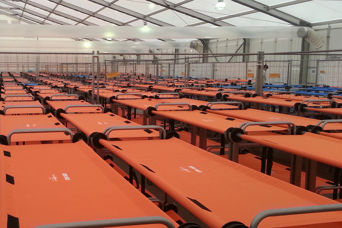 The Disc-Bed is ready to serve a variety of medical/relief environments with a removable, washable mat.