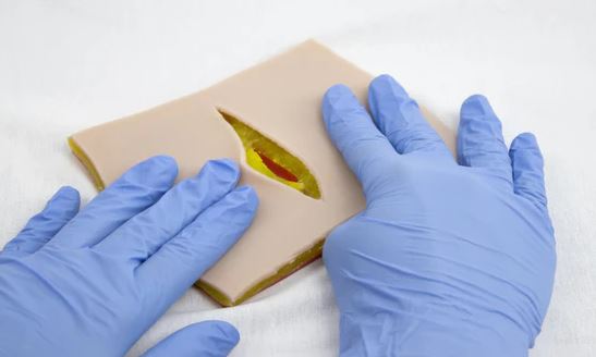 The realistic layers enable to accurately train suturing skills.