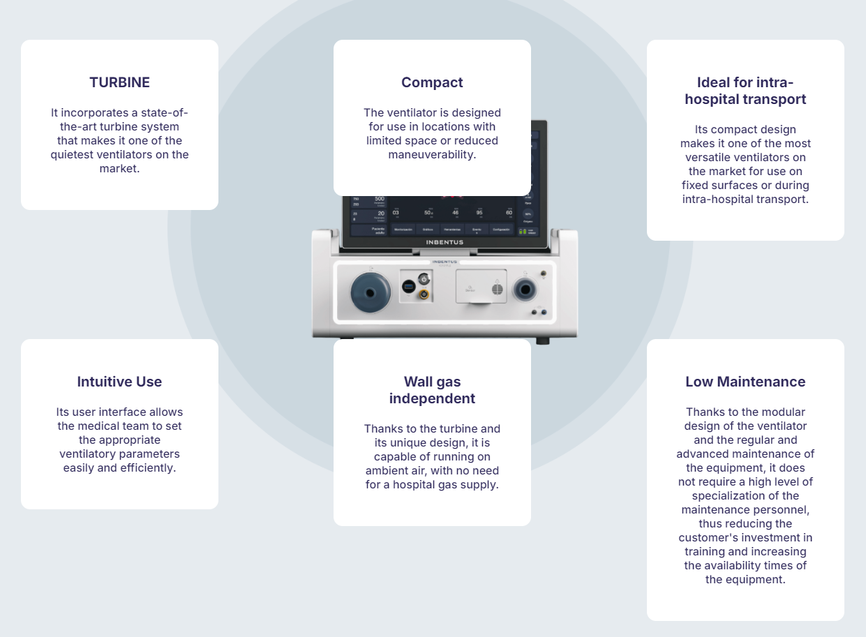 The INBENTUS VERSATILE series consists of multi-purpose and wall gas independent mechanical ventilators developed to provide a complete and effective service to patients throughout their hospital stay